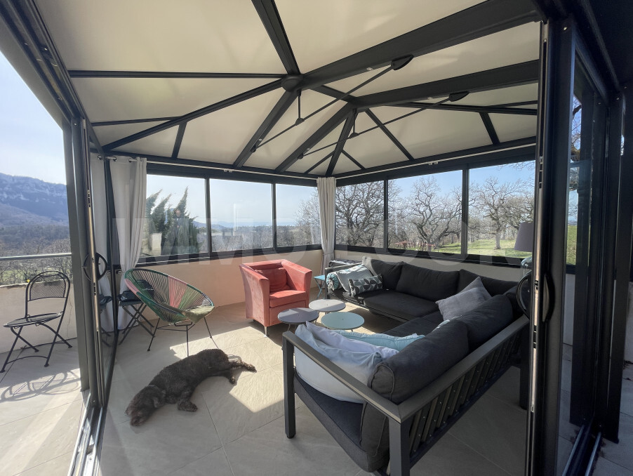 Vue imprenable pour ce mas de charme en pierres sur 10 hectares et seulement à 20' de Dieulefit.