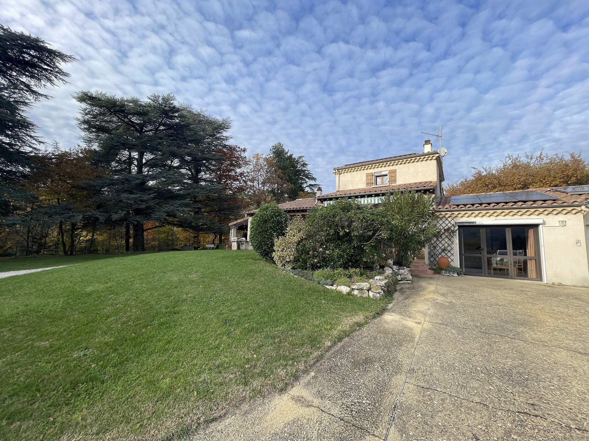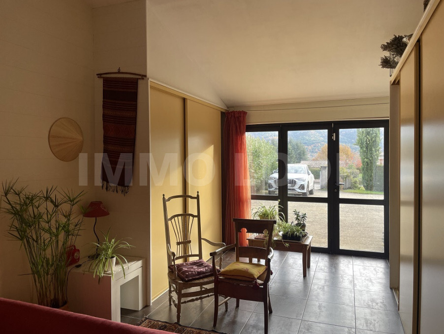 De beaux atouts pour cette maison : 15' à pied du centre ville, position dominante, belle surface de terrain, grande capacité habitable avec 4 chambres, 3 salles d'eau, un studio attenant, 12 panneaux photovoltaïques avec revente à EDF, eau chaude sanitaire solaire, tout-à-l'égout, garage, calme, sans vis à vis avec belle vue sur les montagnes.