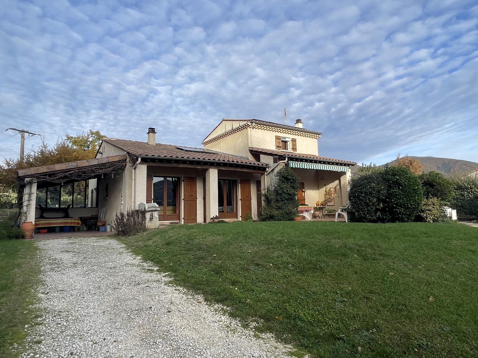 En exclusivité, une belle maison proche du centre de Dieulefit d'une surface de 157 m² habitable sur un terrain de 1060 m² entièrement clos, dans un quartier résidentiel calme, avec une belle exposition ensoleillée sud.
