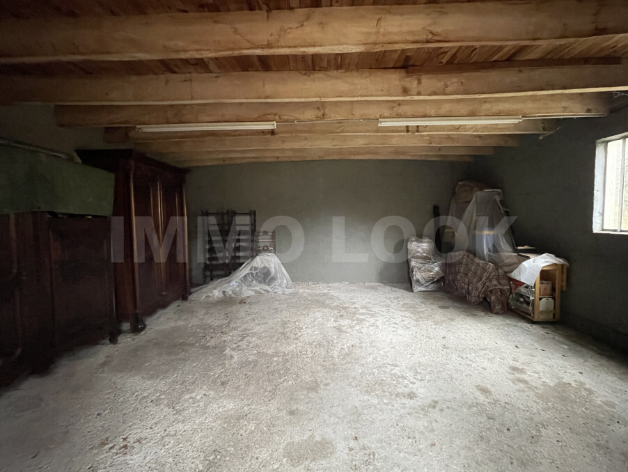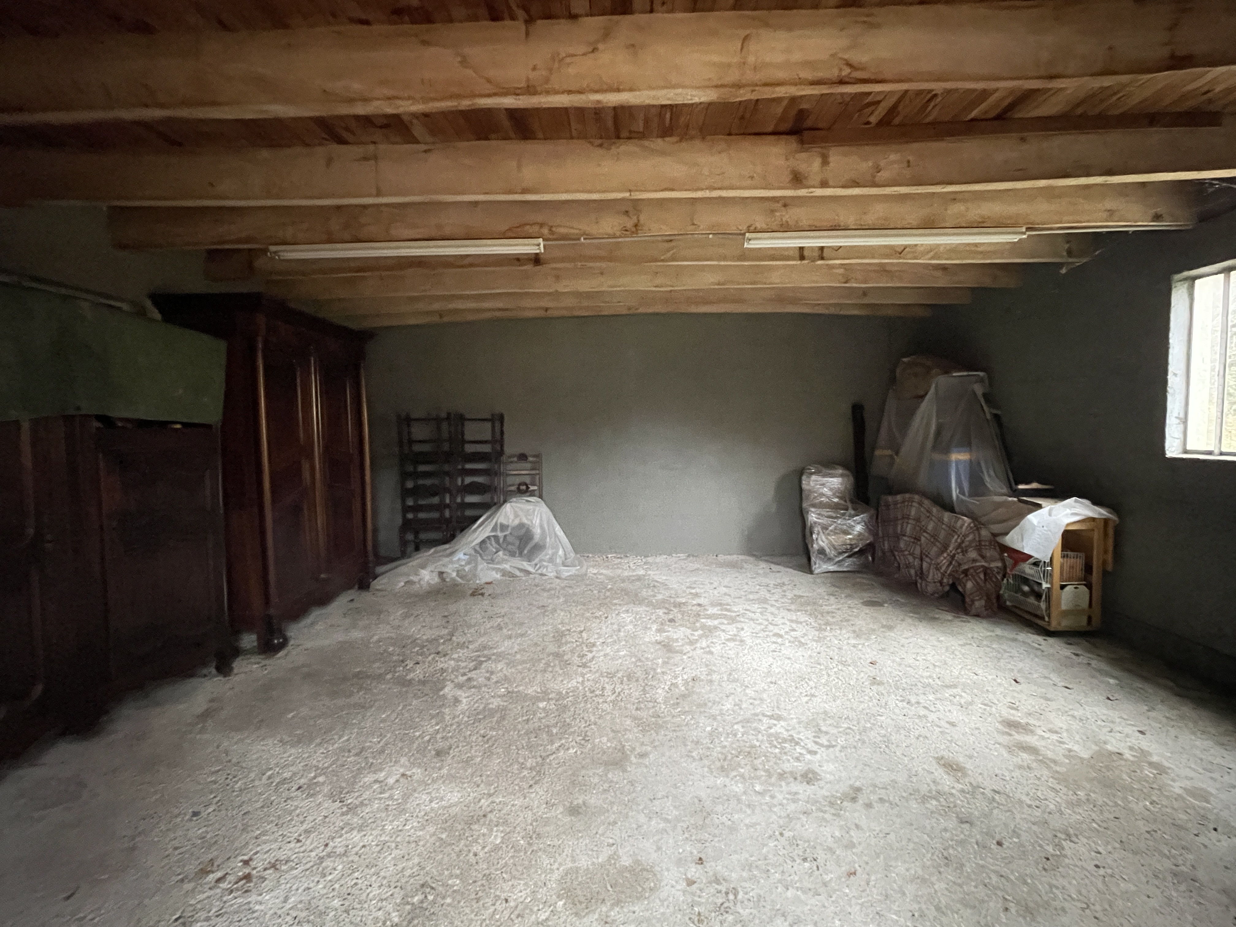 Au rez-de-chaussée d' une chaufferie de 33 m², d'une pièce de 26 m², offrant un beau potentiel d'aménagement. A l'étage, partie habitable avec cuisine, salle à manger donnant sur un balcon, salon, deux chambres, salle d'eau, et WC.